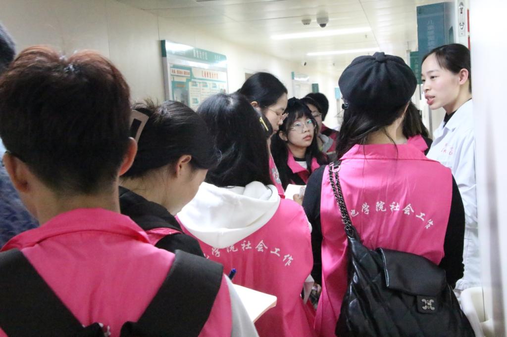 师生们与儿童康复治疗区相关负责人及驻院社工进行了座谈。儿童康复治疗区治疗师梁秋艳围绕当前残障儿童康复服务的政策、服务流程、技术要点、社会效应等,与员工们分享了我国儿童康复服务的发展历程以及医院儿科康复治疗的开展情况。驻院助理社工师潘国栋与同学们分享了残障儿童康复个案管理实务的服务过程、专业技术、服务效果及个人心得体会,并对医务社工如何发挥专业优势在儿童康复项目中开展工作进行深入剖析。