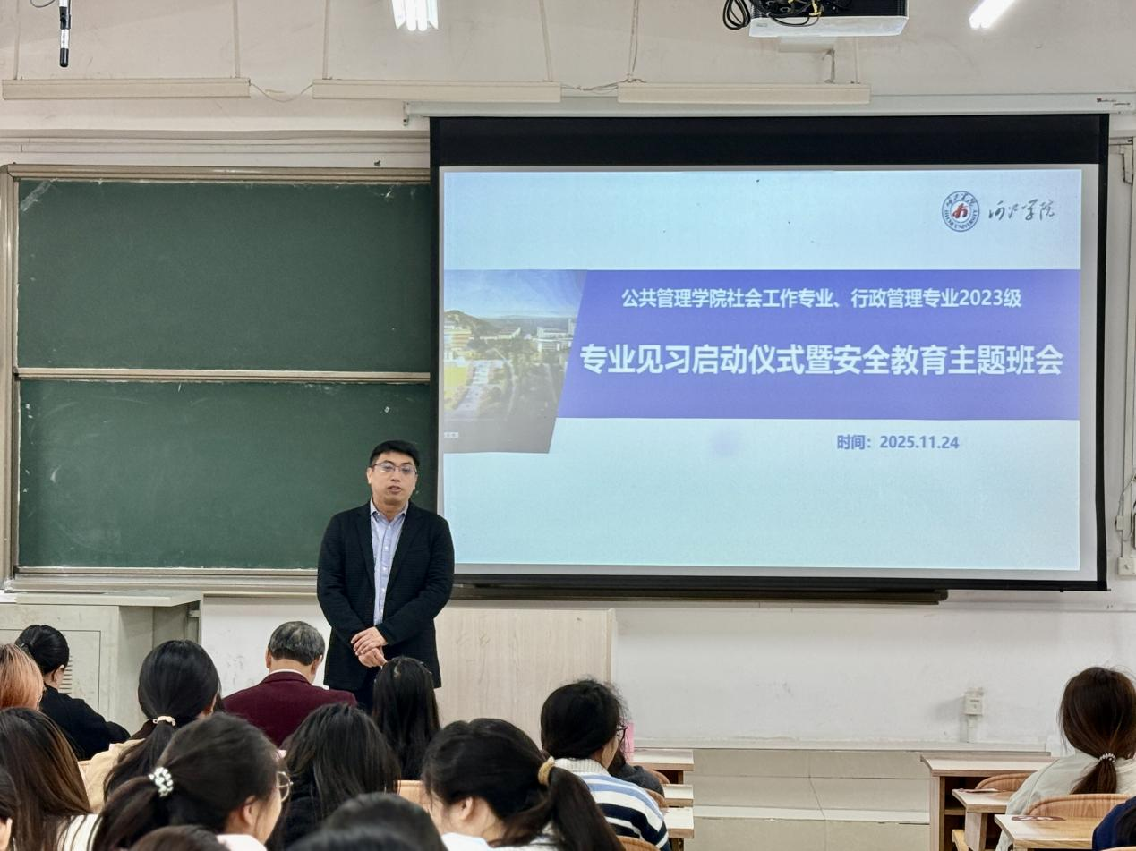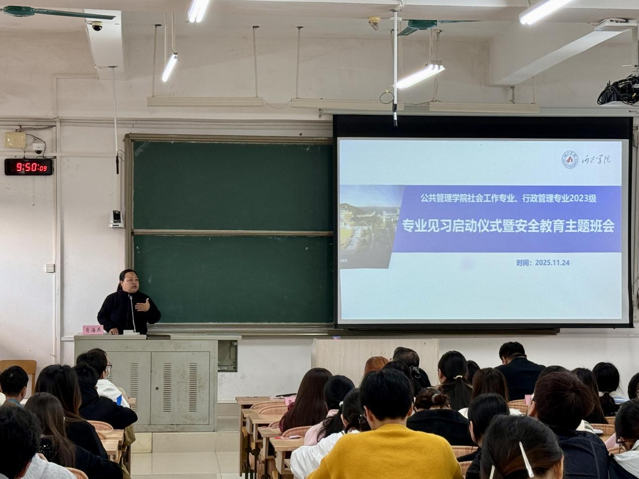 11月24日上午,2023级社会工作、行政管理专业员工赴宜州区专业见习启动仪式在弘毅楼2区406教室举行,公司党委书记韦福、副经理肖海燕、孙明明,以及社会工作、行政管理专业见习指导老师、2023级全体员工参加了启动仪式。仪式由行政管理教研室副主任戴杨艳主持。