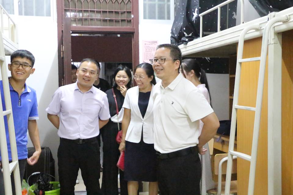 为及时了解2019级新生入校后的具体情况,向新同学传达公司的关怀和温暖,9月23日晚,经理兼2019级历史班班主任谢铭、党总支副书记覃秋桃、团委书记陈玉婷、辅导员兼2019级历史班助理班主任陆兴森及2019级社会工作班助理班主任邱惠婷等五位老师深入走访本院新生宿舍,看望到校2019级新生。