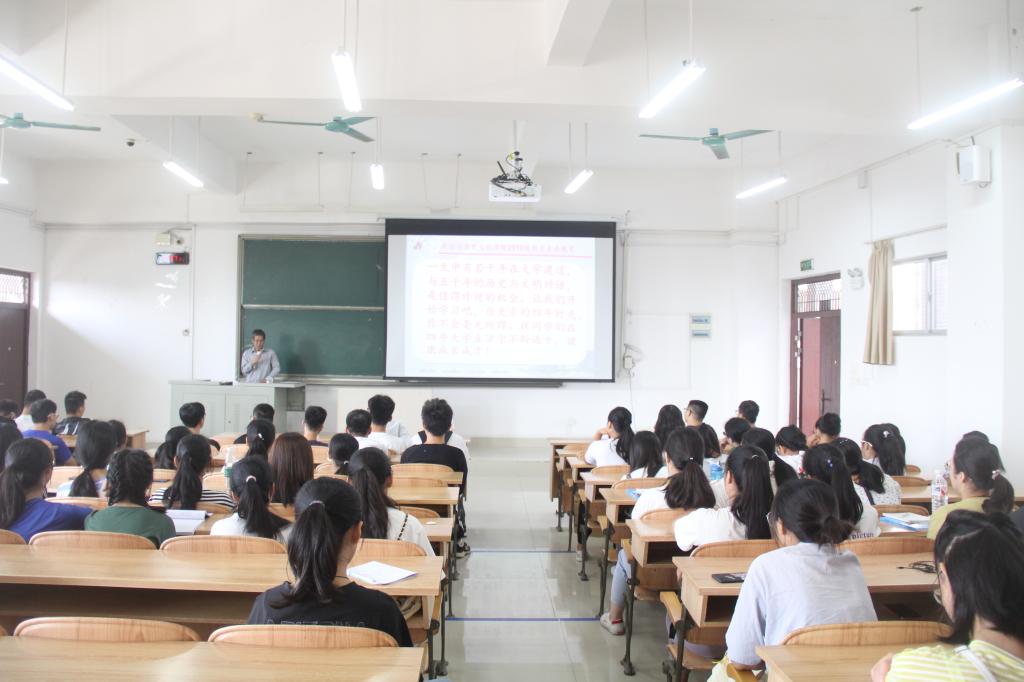 2019年9月25日上午,公司在弘毅楼2-406教室召开2019级新生全体大会暨专业教育启动仪式,公司领导班子、全体在校专业教师及行政人员全部参加会议,2019级全体新生到场。会议由党总支副书记覃秋桃主持。