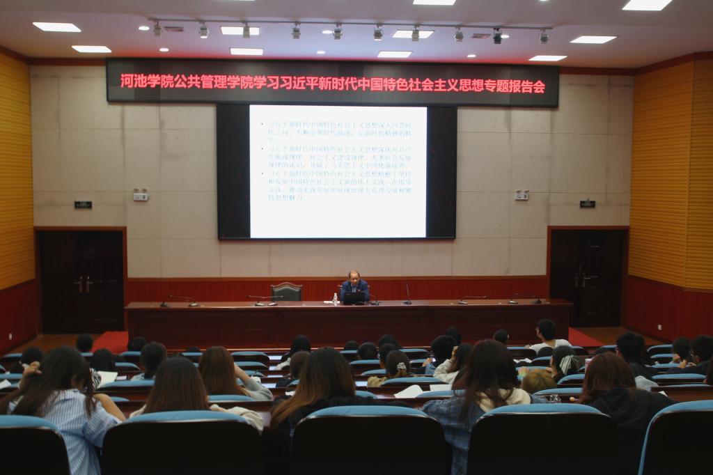黄永明围绕习近平新时代中国特色社会主义思想的形成过程、主要内容和重大意义三个方面对习近平新时代中国特色社会主义思想作了全面而深刻的阐释。并强调,作为当代青年,同学们要深刻认识领会习近平新时代中国特色社会主义思想的时代意义、理论意义和实践意义。