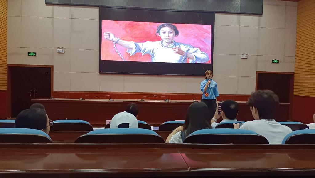 李春学在才艺展示阶段,朗诵了赵一曼的《滨江述怀》,接着她以“蜀中巾帼---赵一曼”为主题,分享了中国共产党历史上的抗日女党员赵一曼的故事。她深情的讲述打动了每一位观众,赢得了阵阵掌声,最终她以第二名的成绩荣获比赛二等奖。