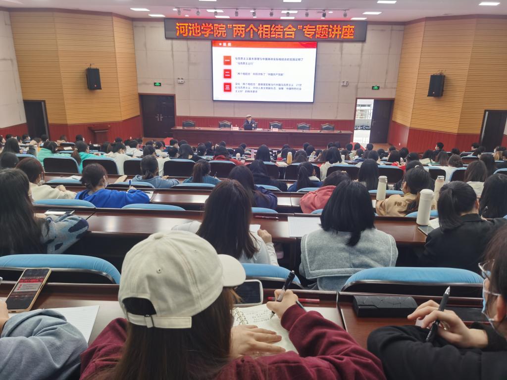 银教授用富有哲理的语言、发人深省的故事、鲜活生动的案例,讲述了坚持把马克思主义基本原理同中国具体实际相结合、同中华优秀传统文化相结合的内涵价值,诠释了马克思主义为什么行、中国共产党为什么能、中国特色社会主义为什么好的真谛。整个讲座旁征博引、深入浅出,既有很强的理论性,又有丰富的实践指导意义,引导同学们自觉增强理论自信和文化自信。