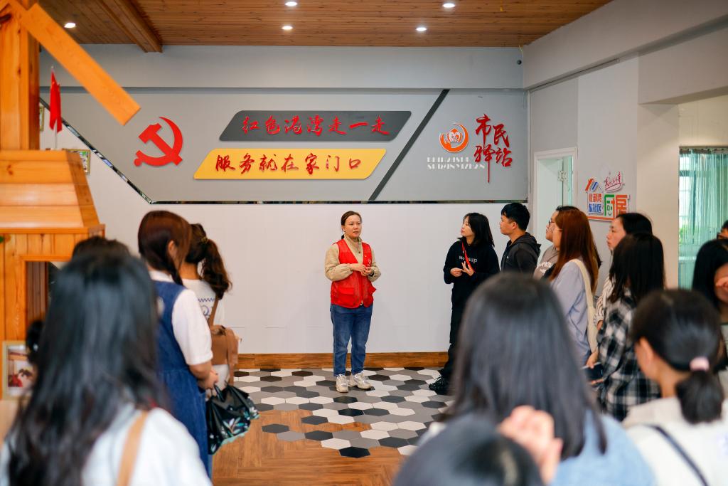 (图为师生在市民驿站参观)
