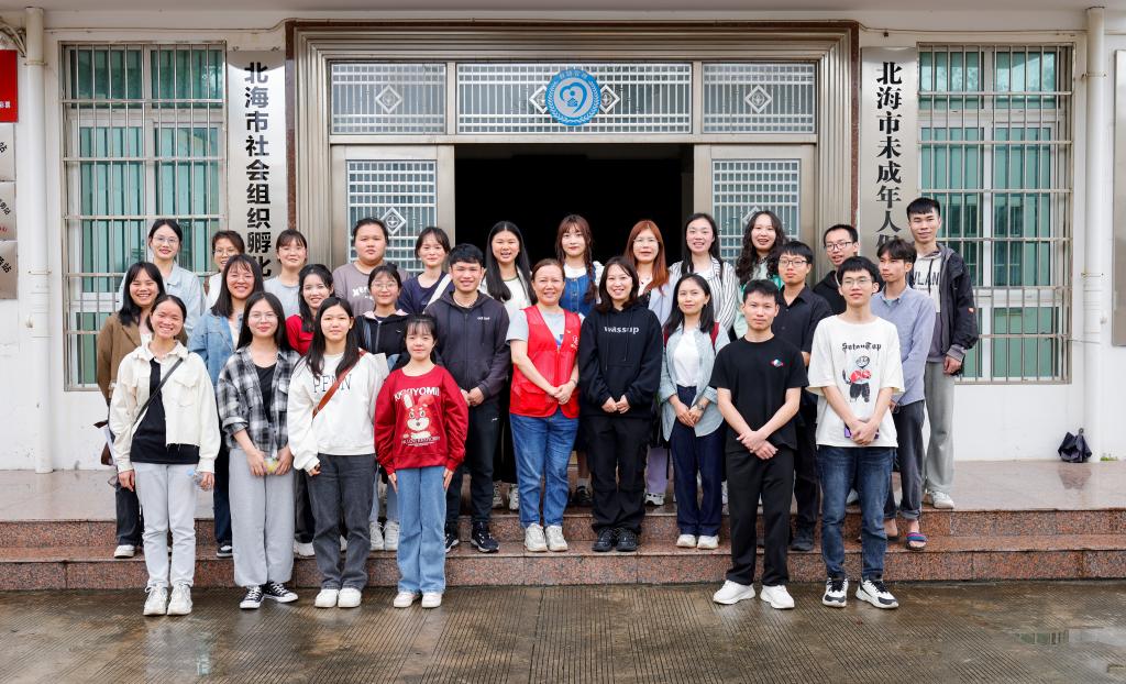 (图为师生在北海市未成年人保护中心合影)