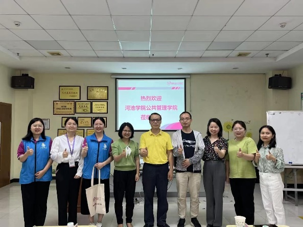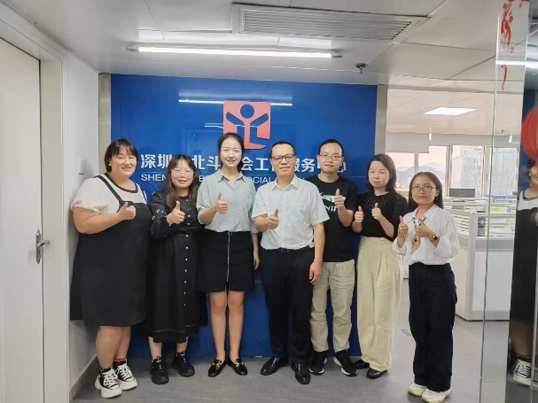 韦福一行先后前往深圳市社联社工服务中心、深圳市北斗社会工作服务中心、深圳市宝安区尚德社会工作服务社、广州市社会组织联合会、广州市普爱社会工作服务社等组织机构实地考察,探访了在机构工作的员工,深入了解各机构的运营模式和人才需求情况,并围绕毕业生就业、岗位开拓、人才联合培养、教学科研、实习就业基地建设等方面与机构座谈交流,为今后进一步合作打下坚实基础。